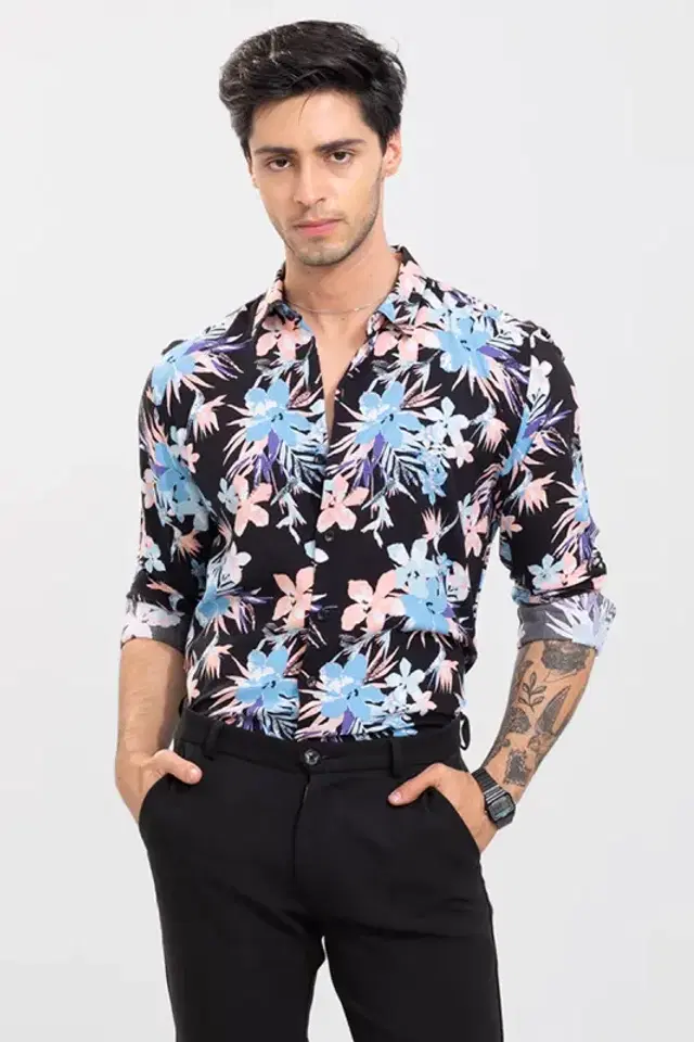 A stylish printed shirt with a dynamic pattern, ideal for casual outings or adding flair to your wardrobe. Perfect for those who love bold fashion statements with a touch of creativity.