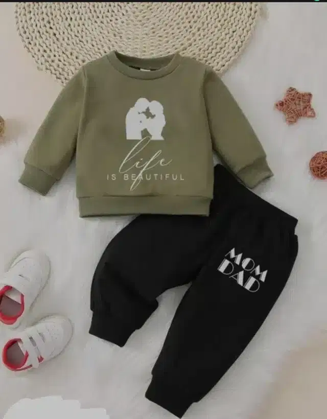 Full Sleeves Printed Top & Bottom Set for Kids (Olive & Black, 18-24 Months) - Buy Online at CityMall