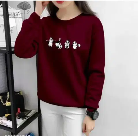 Full Sleeves Printed T-shirt for Women (Maroon, XL) - Buy Online at CityMall