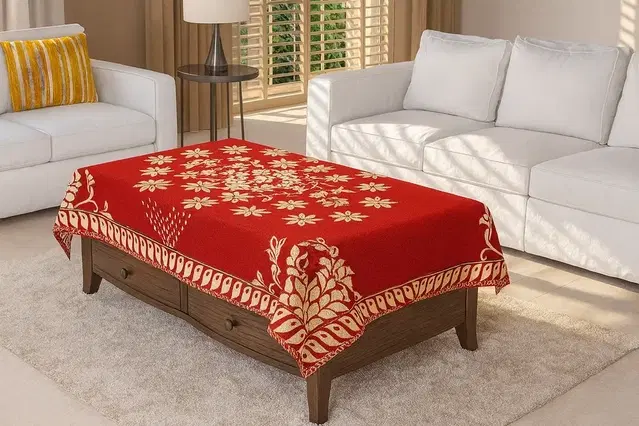 Furnishing Hut Floral Self Design Cotton 4 Seater Center Red Table Cover 36x54in - Buy Online at CityMall