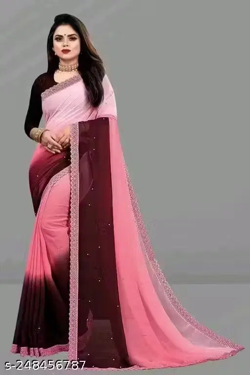 Georgette Colorblocked Saree for Women, Light Pink ( 6.3 m) - Buy Online at CityMall