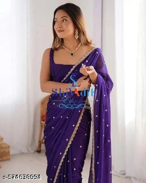 Name: Women's Purple Blue Voilet Georgette Embroidered Bordered Saree With Blouse Trending Beautiful GEORGETTE EMBROIDERY worked lace SAREE WITH BLOUSE PIECE