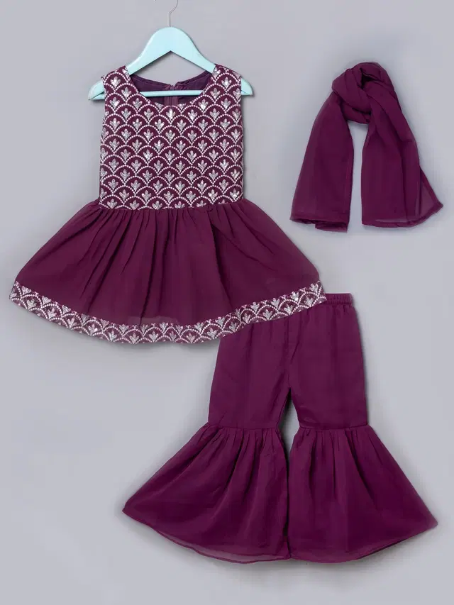 Georgette Embroidered Kurti with Sharara & Dupatta for Girls (Purple, 10-11 Years) @ ₹378 - Buy Online at CityMall