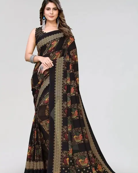 Georgette Printed Saree for Women, Black (6.3 m) - Buy Online at CityMall