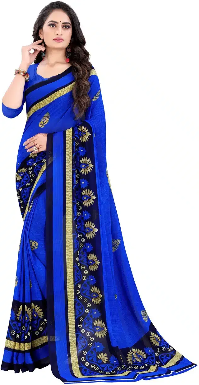 Georgette Printed Saree for Women (Blue, 5.95 m) - Buy Online at CityMall
