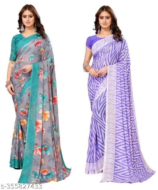 Name: Women's Desinger Printed Trendy Georgette Saree with Blouse Material (Pack of 2) Saree Fabric: Georgette Blouse: Running Blouse Blouse Fabric: Georgette Pattern: Printed Blouse Pattern: Printed Net Quantity (N): Pack of 2 Name : Dailywear Printed Georgette Saree Pack of 2