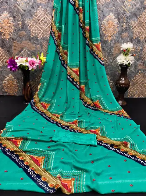 Georgette Printed Saree for Women (Sea Green, 6.3 m)