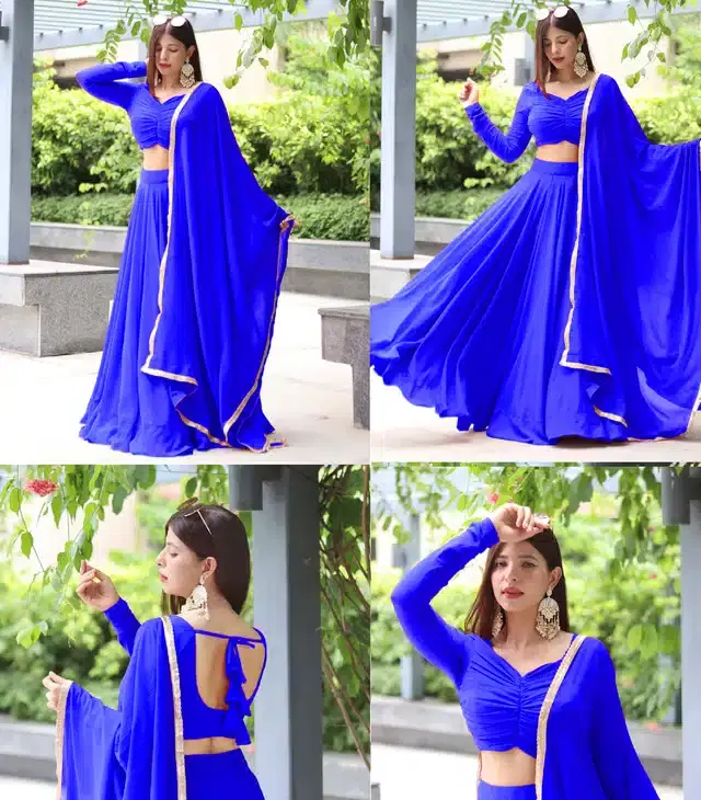 Georgette Semi Stitched Lehenga Choli for Women (Blue, Free Size) @ ₹789 - Buy Online at CityMall