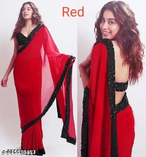 Georgette Solid Saree for Women, Red (6.3 m) @ ₹533 - Buy Online at CityMall