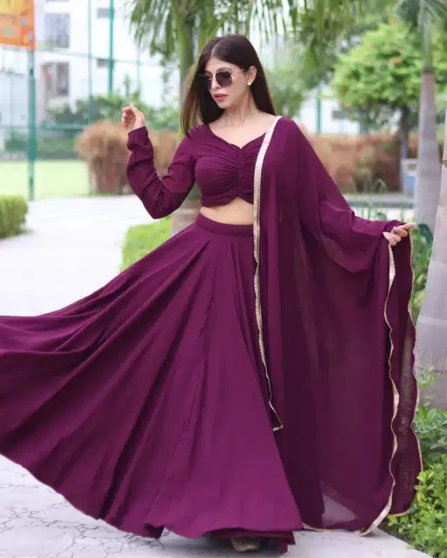 Georgette Solid Semi Stitched Lehenga Choli for Women (Purple) @ ₹662 - Buy Online at CityMall
