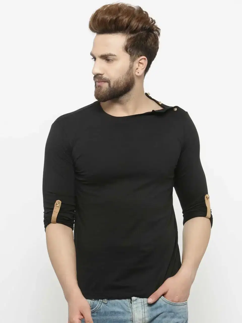 Gespo Full Sleeve Solid T-Shirt (Black, M) (TS89) - Buy Online at CityMall