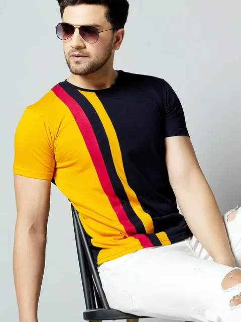 Gespo Half Sleeve Color Block T-Shirt (Multi, L) (TS176) - Buy Online at CityMall