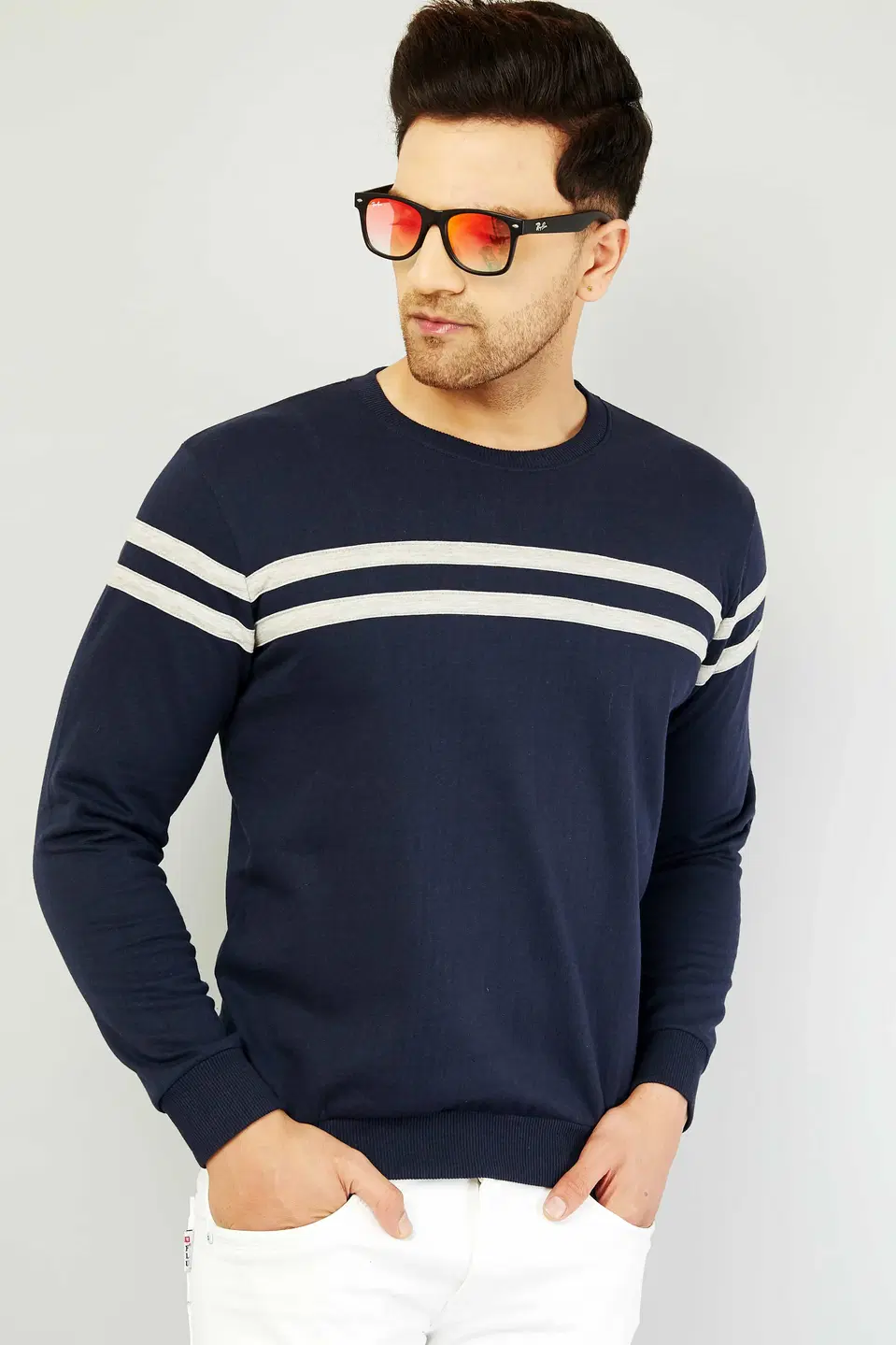 GESPO Mens Full Sleeve Stripes Sweatshirt (Blue, M) (S22) - Buy Online at CityMall