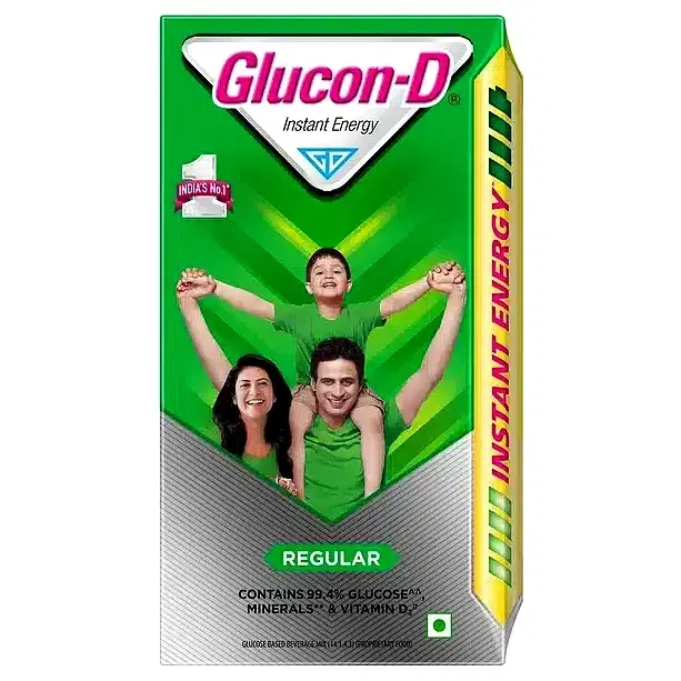 Product Description Glucon-D Instant Energy Health Drink contains 99.4% of the glucose that helps replenish body glucose and fills you with the energy required to stay active. It comes in a variety of flavours like nimbu, tangy orange and regular. It is easily absorbed by the body, thus giving out an instant energy boost and refreshment. Enriched with Vitamin-D and Minerals, including Calcium and Phosphorus, this glucose drink helps you charge up to fight tiredness and supports immunity. Add Glucon-D to a glass of water every day to provide growing active children with the energy that keeps them going and acts as a refreshment after a long day.