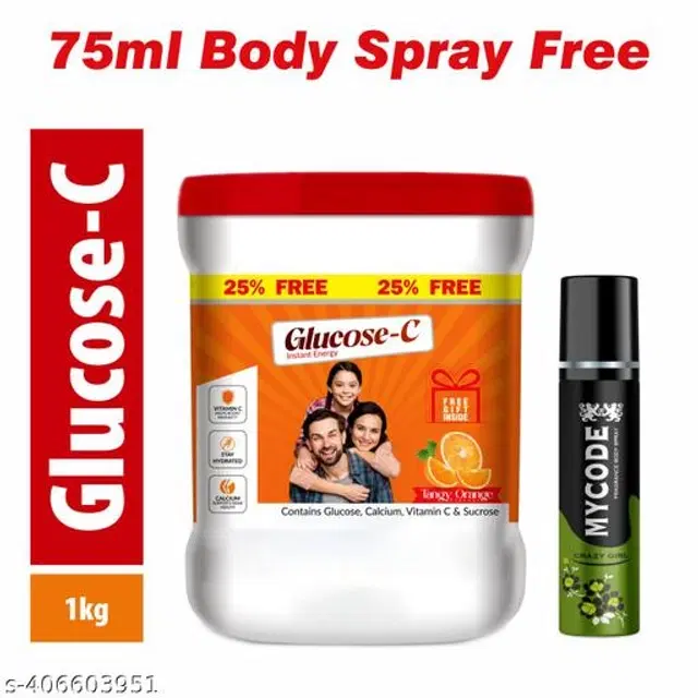Glucose -C Orange Flavour Energy Powder, 1000 g with MYCODE Crazy Girl Body Spray, 75 ml, Set of 2