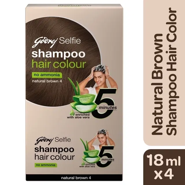 Godrej Selfie Shampoo Hair Color - Natural Brown, 18 ml (Pack of 4)