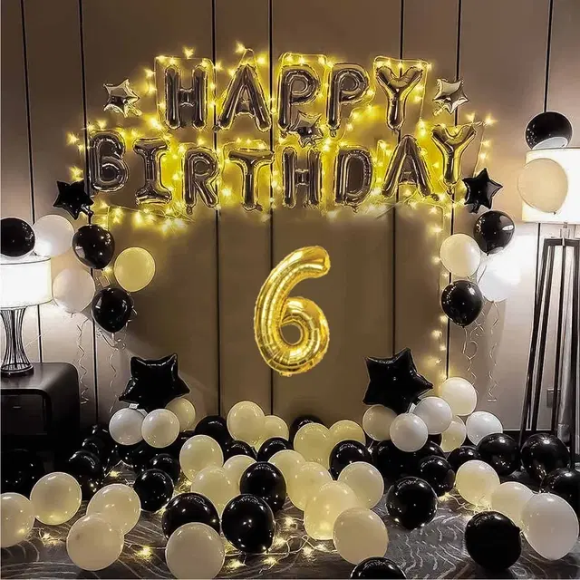 Gold & SIlver Theme 6th Birthday Balloon Decoration Kit , Multicolor, Pack Of 69 - Buy Online at CityMall