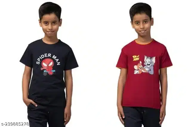 Half Sleeves T-Shirt for Kids, Pack of 2 (Black & Maroon, 6-7 Years)