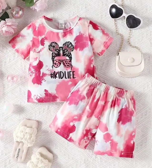 KIDS LIFE DIGITAL HALF T-SHIRT HALF PANT (RANI GULABI)