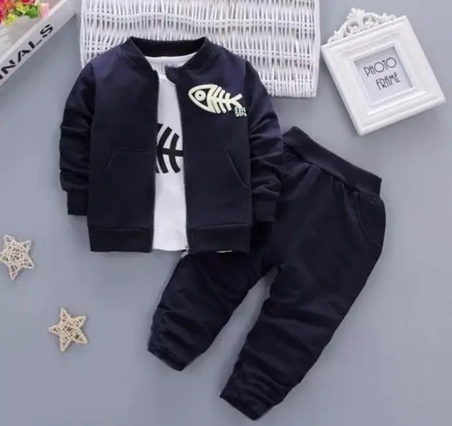 FISH T-SHIRT JACKET AND PANT (WHITE AND NAVY BLUE)3PS SET