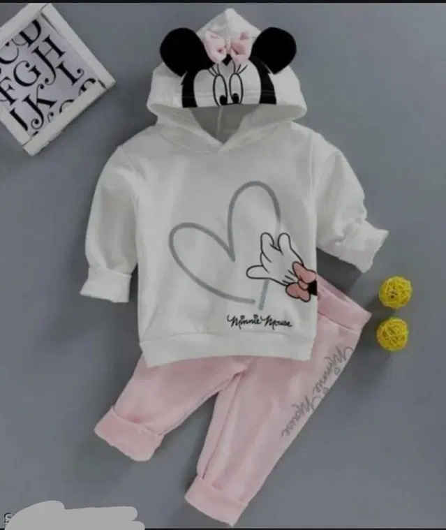 MINI MOUSE DOUBLE KAAN FULL TOPI T-SHIRT PANT WHITE AND PINK