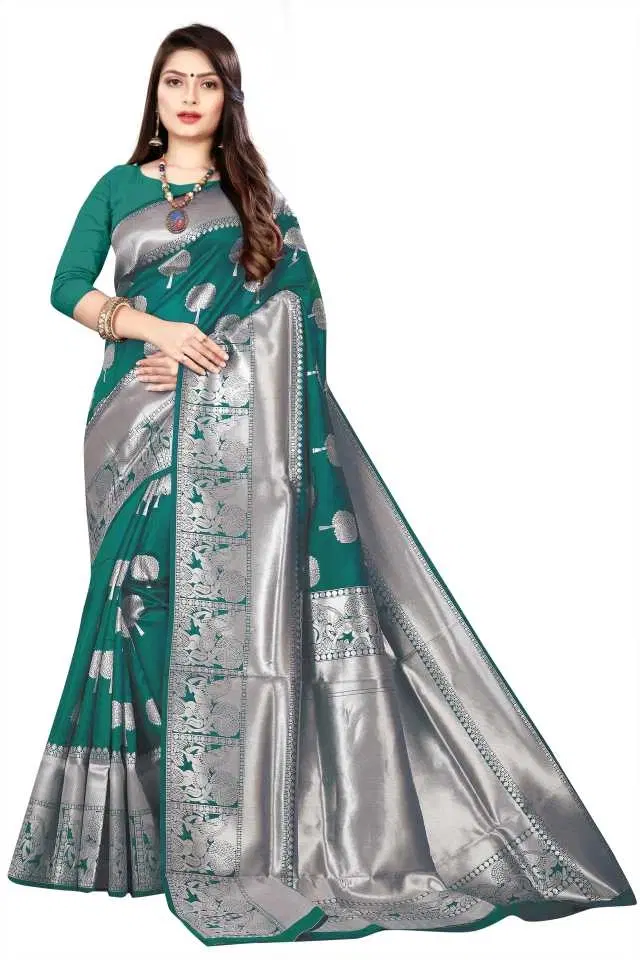 Litchi Silk Zari Woven Saree for Women, Teal (6.3 m) @ ₹489 - Buy Online at CityMall