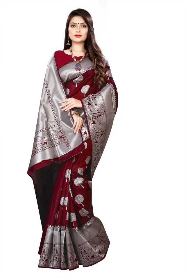 Litchi Silk Zari Woven Saree for Women, Maroon (6.3 m) @ ₹489 - Buy Online at CityMall