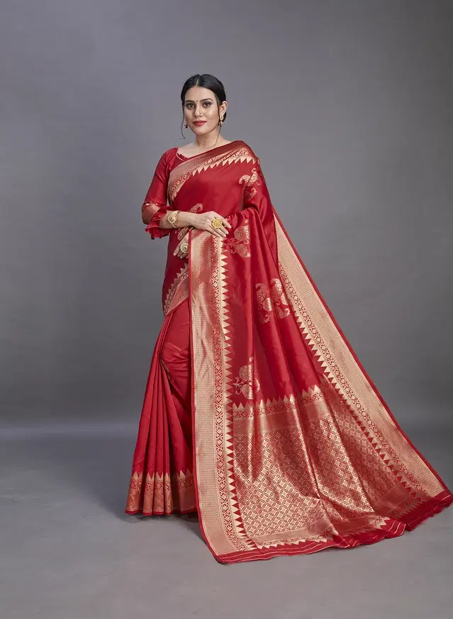 Litchi Silk Zari Woven Saree for Women, Red (6.3 m) @ ₹479 - Buy Online at CityMall