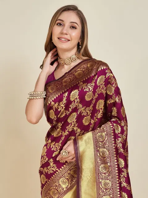 Litchi Silk Floral Saree for Women, Purple (6.3 m) - Buy Online at CityMall