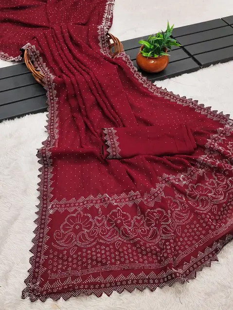 Georgette Dyed/ Washed Saree for Women, Maroon (6.3 m) @ ₹546 - Buy Online at CityMall