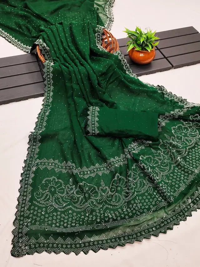 Georgette Dyed/ Washed Saree for Women, Bottle Green (6.3 m) @ ₹546 - Buy Online at CityMall