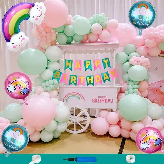 Rainbow Theme Happy Birthday Decoration Items For Girls , Multicolor, Pack of 109 - Buy Online at CityMall