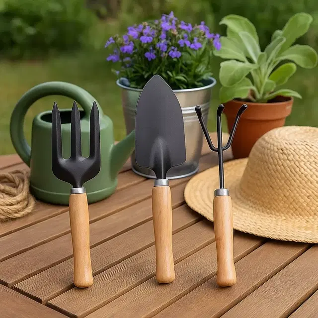 Immutable Garden Tools for Home Gardening Set, Gardening Trowel, Garden Fork, Wooden Handle, Set of 3 - Buy Online at CityMall