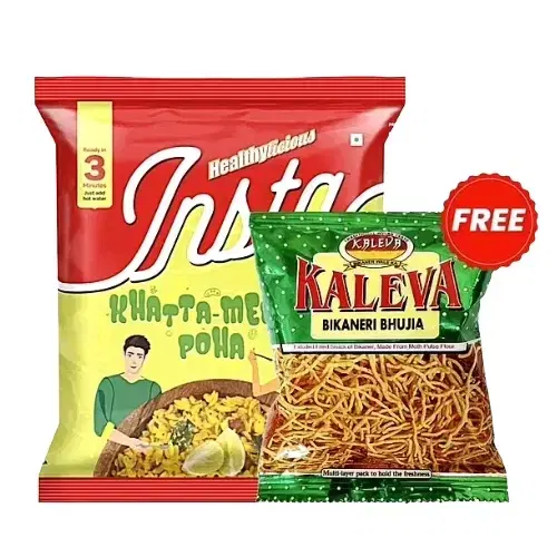 Insta Ahaar Khatta Meetha Poha 60 g (Pouch) + Free Kaleva Bikaneri Bhujia 8 g @ ₹29 - Buy Online at CityMall