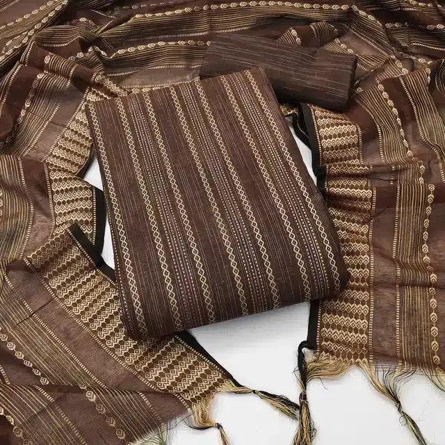 Jacquard Unstitched Dress Material for Women (Brown) - Buy Online at CityMall
