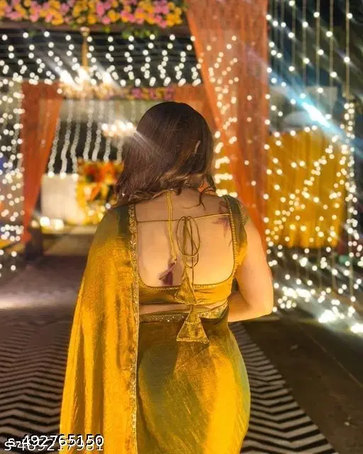 The blouse worn by the model might be for modelling purpose only. Check the image of the blouse piece to understand how the actual blouse piece looks like.