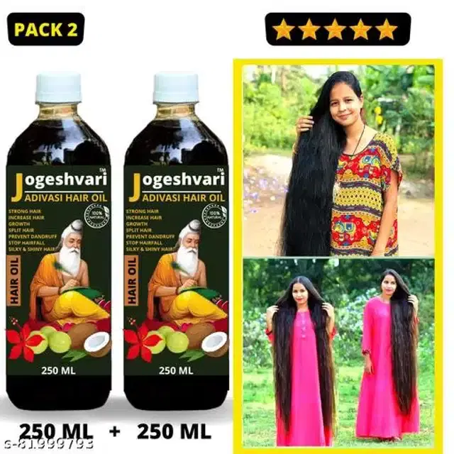 Product Name: Jogeshwari Adivasi Medicine Hair Oil 250ml 1 Month Pack for Women and Men for Hair Long - Dandruff Control - Hair Loss Control - Hair Regrowth Hair Oil (250ml) 100 % Satisfaction, Best Quality, Original Brand Assured PACK 2