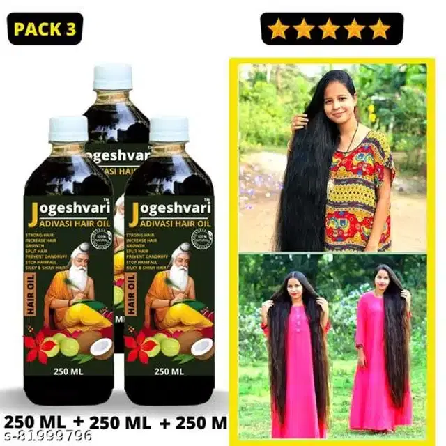 Product Name: Jogeshwari Adivasi Medicine Hair Oil 250ml 1 Month Pack for Women and Men for Hair Long - Dandruff Control - Hair Loss Control - Hair Regrowth Hair Oil (250ml) 100 % Satisfaction, Best Quality, Original Brand Assured PACK 3