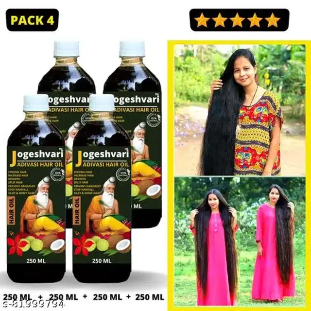 Product Name: Jogeshwari Adivasi Medicine Hair Oil 250ml 1 Month Pack for Women and Men for Hair Long - Dandruff Control - Hair Loss Control - Hair Regrowth Hair Oil (250ml) 100 % Satisfaction, Best Quality, Original Brand Assured PACK 4
