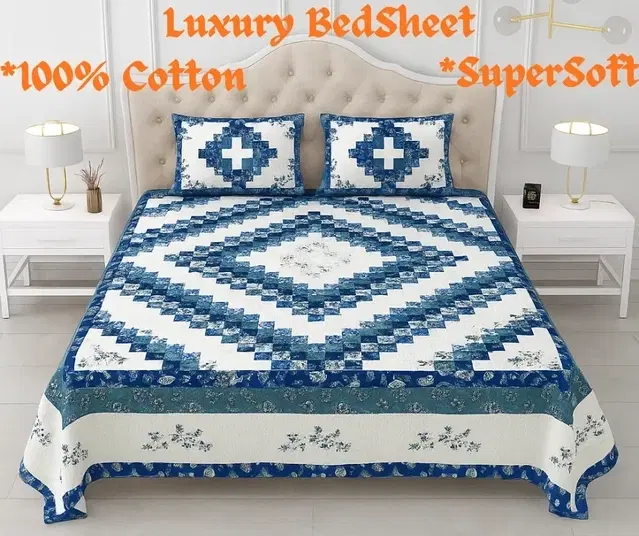 KC Jaipuri Cotton King Bedsheeet Geometry Printed 90x108in Royal Blue - Buy Online at CityMall