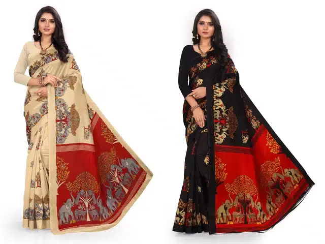 Khadi Silk Printed Saree for Women, Pack of 2 (Multicolor, 6.3 m) @ ₹514 - Buy Online at CityMall