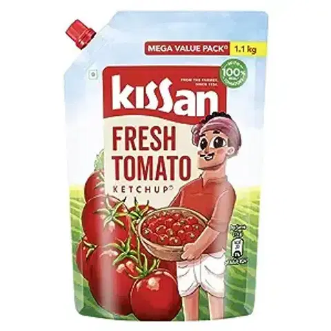 Product Description Kissan Fresh Tomato Ketchup is made with 100% real, naturally ripened fresh Tomatoes. The Tangy Tomato Ketchup is a must have at all homes and most loved by Indians! This sauce bottle and pouch packs can either be paired with fries or noodles or dhokla. This can be added to almost every dish to make them so much tastier. It’s an assured hero for all the snacks - be it samosas, pakoras, noodles or roti roll – a perfect ally for making wholesome and yummy food. Kissan Tomato ketchup helps healthy foods turn in yummy and tasty for the entire family. You can use this tomato ketchup as a tomato sauce or tomato chutney. Started in 1934, Kissan one of the most popular food brand in India. At Kissan, we keep the farmer's interest in mind along every step of the way. True to its name, Kissan works with over 8,000 farmers who grow tomatoes for Kissan Ketchup and sauce. The brand reassures mothers that they can turn any healthy but boring meal into a fun ketchup recipe with Kissan Ketchup and sauce ranges! The tangy red burst of tomatoes in ketchup and red chillies, will give you the sensorial delight of nature’s goodness.