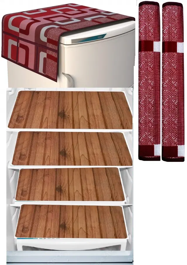 Kitchen Combo Fridge Top Cover, 2 Piece Fridge Handle Cover, 4 Pcs Fridge Mats, (Set of 7 Piece)