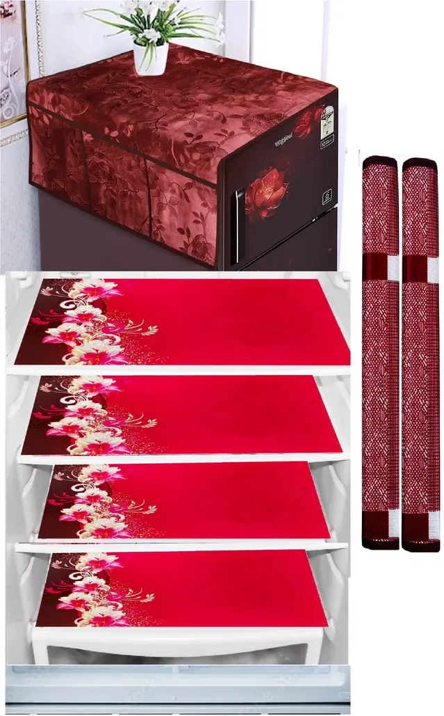 Kitchen Combo Fridge Top Cover, 2 Piece Fridge Handle Cover, 4 Pcs Fridge Mats, (Set of 7 Piece)