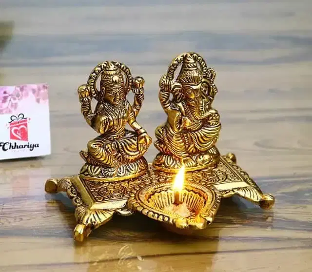 Lakshmi Ganesha Metal Diya Statue Idol, Gold, 20 X 15 X 10 cm - Buy Online at CityMall