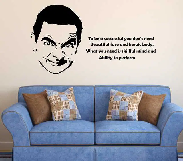 Lansticks Pvc Vinyl Mr.Bean Image With Motivational Quotes Medium Self Adhesive Sticker, 50X60 Cm, Ln-00326
