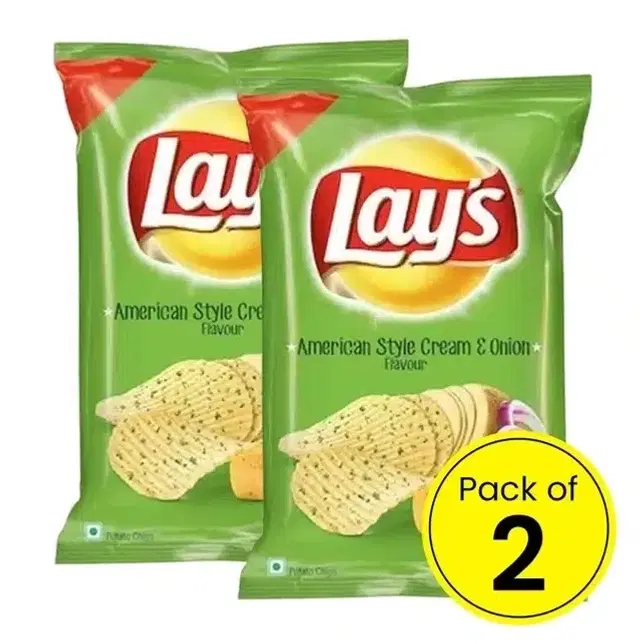 Lays Americann Style Cream & Onion Flavour Chips 2X73.7 g (Pack Of 2) @ ₹57 - Buy Online at CityMall