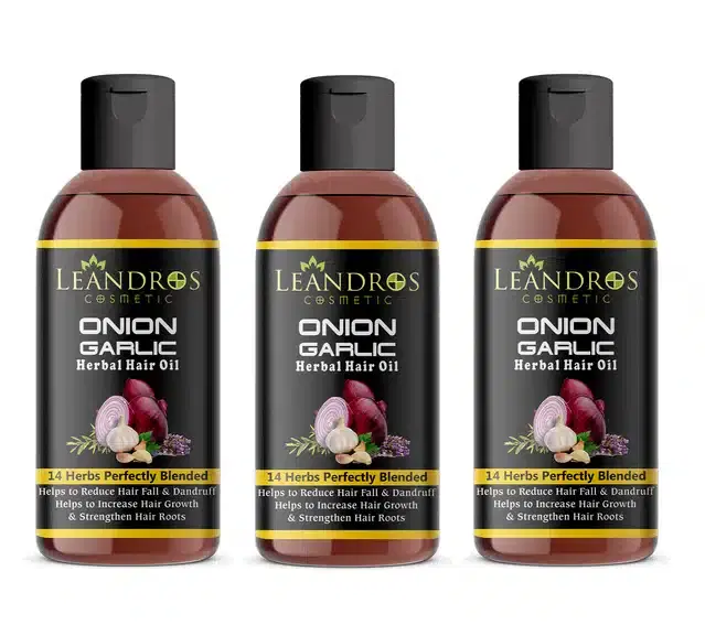 Leandros Onion Garlic Hair Oil, Pack of 3, 100 ml