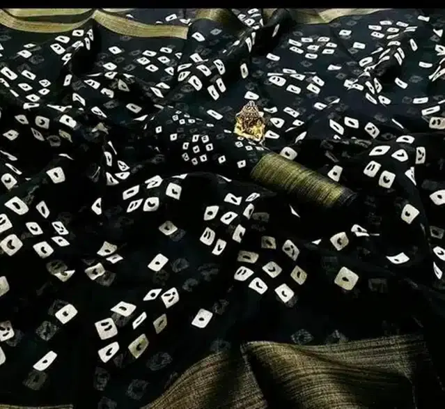 Linen Bandhani Saree for Women (Black, 6.3 m) - Buy Online at CityMall