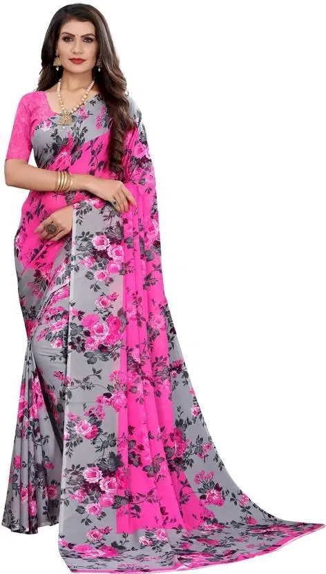 Georgette Floral Print Saree for Women, Pink - Buy Online at CityMall